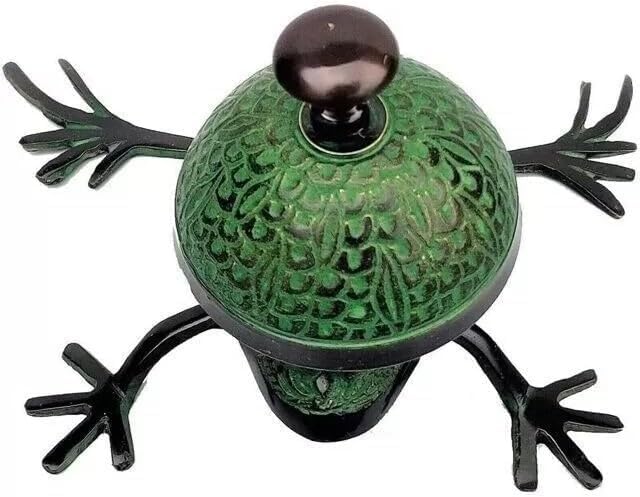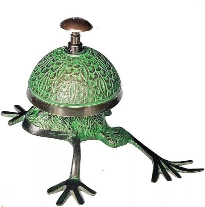 The Antique Brass Desk Bell, designed in a charming Jumping Frog style, is a delightful blend of functionality and vintage aesthetics. This unique counter bell is more than just a tool for attracting attention; it is a decorative piece that adds a touch of whimsy and elegance to any setting. Crafted from high-quality brass, the bell features a meticulously detailed frog design that captures the playful spirit of this vintage-inspired piece. Its polished brass finish gives it a timeless appeal, making it a standout accessory for hotel receptions, office desks, or service counters. The bell produces a clear, pleasant ring when pressed, ensuring it performs its primary function effectively while also serving as a conversation starter. The frog's dynamic pose, as if ready to leap, adds an element of fun and surprise, delighting guests and clients alike.This bell is not just a practical item but also a piece of art that enhances the ambiance of any space. Its antique charm makes it an excellent gift for those who appreciate unique and finely crafted decor items. Whether used in a professional setting or as a decorative accent at home, the Antique Brass Desk Bell, Jumping Frog Style, combines whimsical design with vintage elegance, making it a cherished addition to any collection.